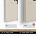Vergleich der Rahmentiefe unser Weltkarten Pinn-Leinwand, zwischen Slim-Line mit 2 cm Tiefe und Gallery-Line mit 4 cm Tiefe