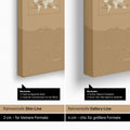 Vergleich der Rahmentiefe unser Weltkarten Pinn-Leinwand, zwischen Slim-Line mit 2 cm Tiefe und Gallery-Line mit 4 cm Tiefe