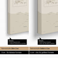 Vergleich der Rahmentiefe unser Weltkarten Pinn-Leinwand, zwischen Slim-Line mit 2 cm Tiefe und Gallery-Line mit 4 cm Tiefe