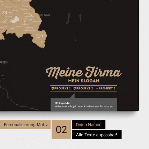 Germany Map ZIP® (ZIP-Codes 1-2-3-digit) Push Pin Canvas – Sonar Black