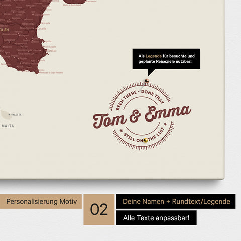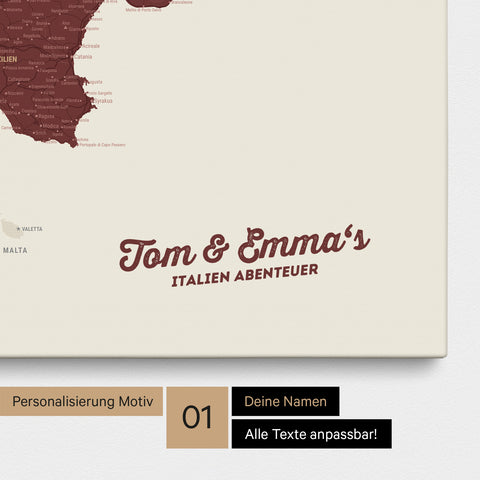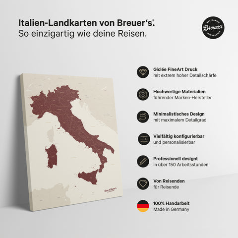 Italy Push Pin Map TRAVEL® – Bordeaux Red