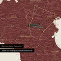 With the Push Pin Map PLUS, we additionally insert a PALBOARD® rigid foam board directly behind the canvas into the stretcher frame. The decisive advantage: PALBOARD® is better than cork! The material is significantly more shatterproof, feather-light – and holds pins taut perfectly. Pinning is really fun this way!
