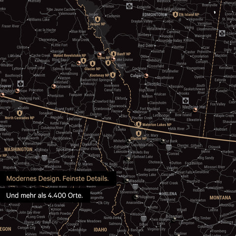 • High level of detail: Map of North America (Canada, USA) and Central America (from Mexico to the Caribbean): all states and capitals + approx. 4,400 places + all national parks + the most important lakes and rivers