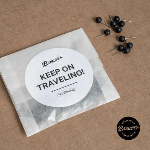 Get more out of your new world map and mark your travel destinations and routes on the pinboard with these black pins. The pins, made of sturdy, rust-free metal with a matte black head, perfectly match the colors of our world maps. This makes every travel destination a star on your world map!