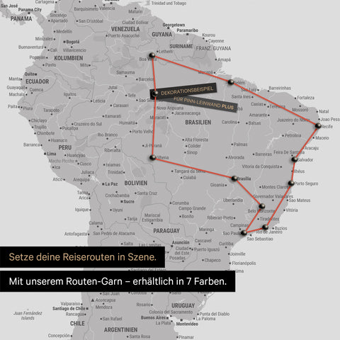 Get more out of your world map and mark your travel routes with this brick red cotton cord. Connect your travel destinations with pins and the cord made of eco-friendly, natural cotton. It perfectly matches the colors of our world maps. This makes every travel route a star on your world map.